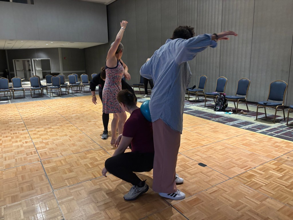 Donielle Bailey Horst’s body of work is an elliptical exploration of thoughts, words, and actions. Just like the three dots of the ellipsis ( … leading the viewer to sit and contemplate what’s next), her multimodal inquiries are abstruse, unfolding via explorations of the unknown. Donielle’s practice-based-research embodies space, time, and energy—an interplay between concepts, expressions, and physical feats. Similar to what the French term théâtre dansé, she combines choreography, storytelling, and auditory accompaniment, ranging from the anticipated musical to impromptu conversations to the expanse of space where sound disappears. Guided by a methodology of play, Donielle’s work reveals a window back to youthful exuberance, where disorganization leads to new discoveries. Disembodied environments (surroundings separate from the physical body) offer elements of chance, imagination, and emergence unique to each exploration.